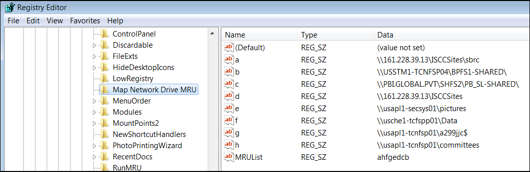 - Navigate to HKEY_CURRENT_USER\Software\Microsoft\Windows\CurrentVersion\​Explorer\Map Network Drive MRU.