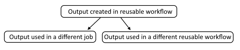For example, let's say you have a main workflow that first uses the reusable workflow named foo.yml and the foo.yml workflow creates an output named hello that contains value World. The main workflow then has a subsequent job that needs the hello output and a subsequent reusable workflow that also needs the hello output. The main workflow could look something like this.