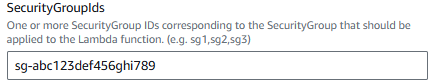 SecurityGroupIds will be the Security Group you created for Athena Postgres.