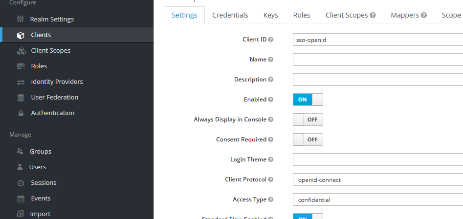 - identityProviders type must be OpenID since an OpenID client was created in sso