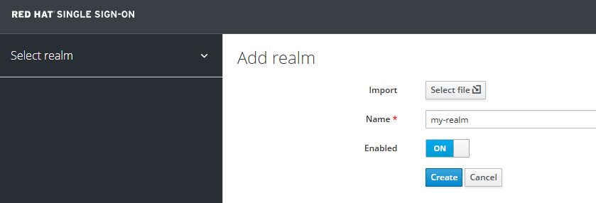 Give the realm a name, ensure it is enabled (of course), and select Create.