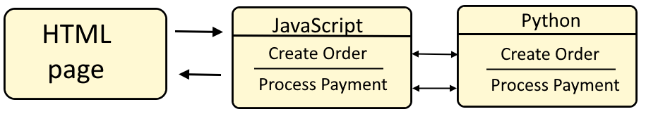 Let's say you have a Flask app that provides an HTML page that prompts for credit card information. Upon entering the credit card information, there is back and forth between Javascript and Python to process the transaction, and the user is then returned to an HTML page letting the user know if their transaction was successful.