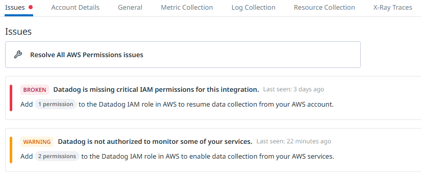 In the left panel of the DataDog console, select Integrations > AWS and select your AWS account.